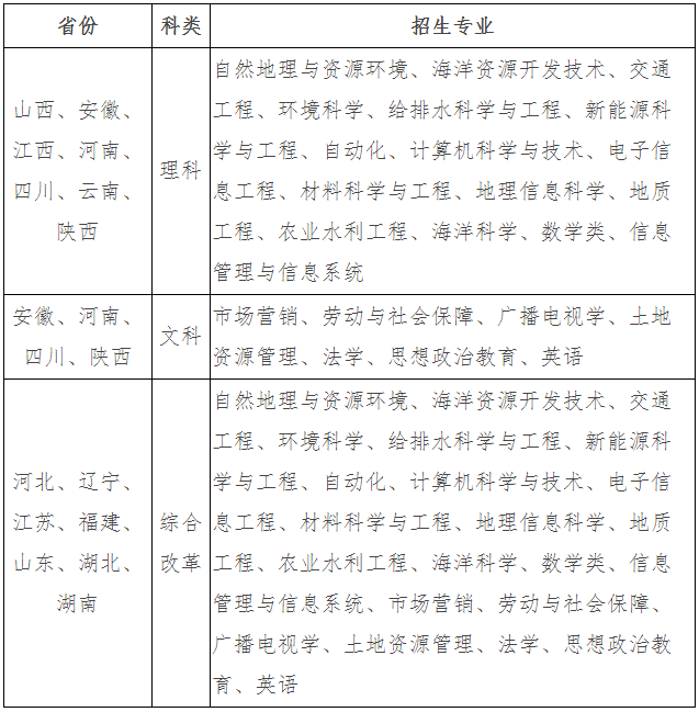 注:各省具体招生专业及计划以我校6月中旬在河海大学招生信息网(http://zsw.hhu.edu.cn/)发布的2021年高校专项计划分省分专业目录为准。