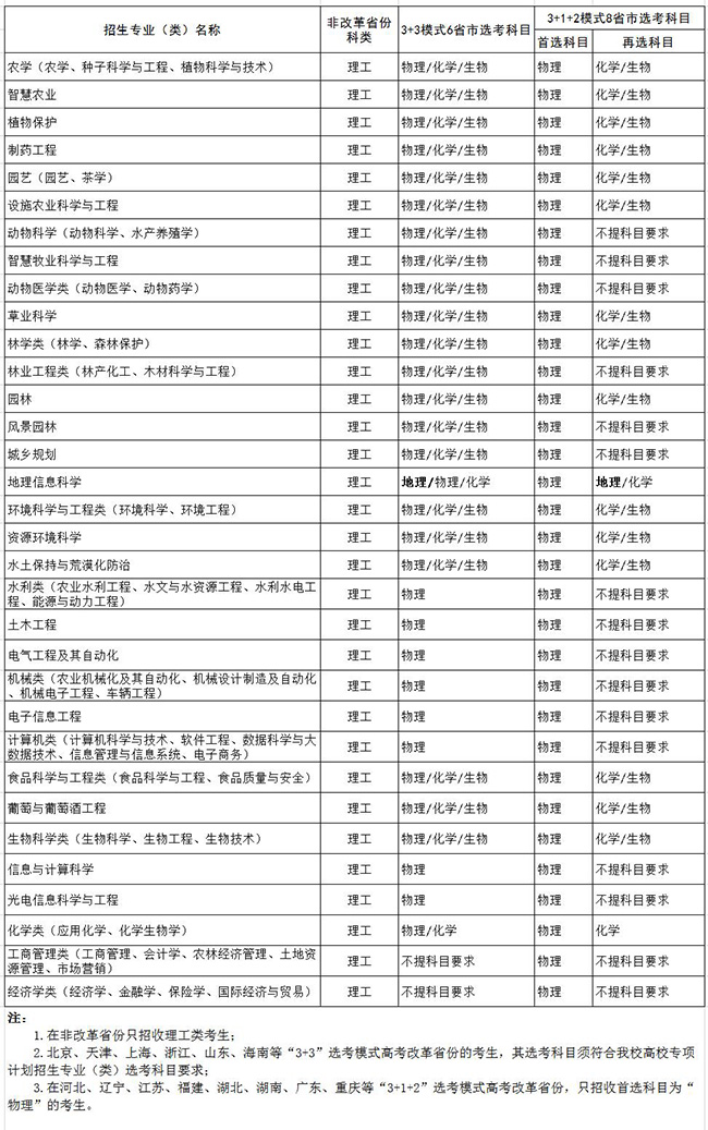 3.对于实行高考综合改革省份的考生,考生高考选考科目须与我校招生专业(类)选考科目要求一致(见附件1)。